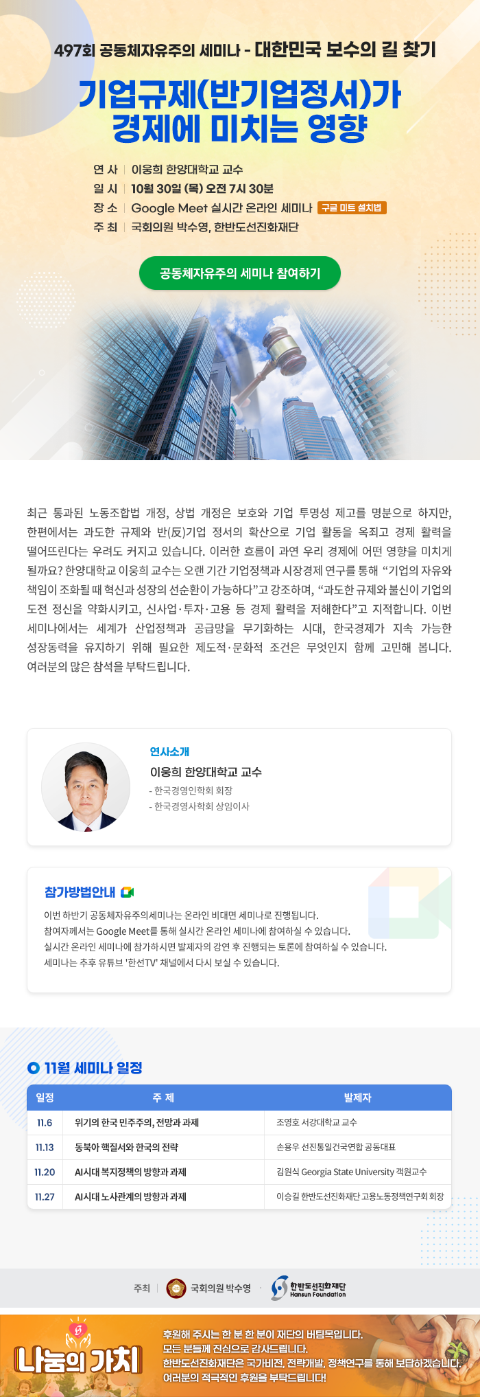 [제497회 공동체자유주의세미나] 기업규제(반기업정서)가 경제에 미치는 영향(10월30일, 7시30분)