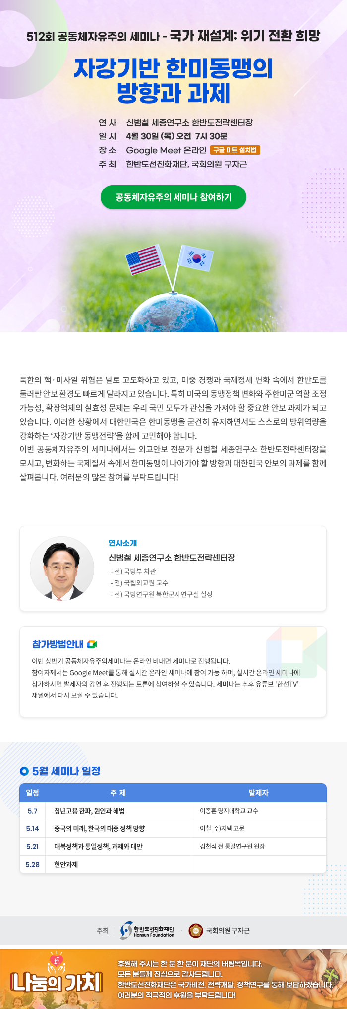 [512회 공동체자유주의 세미나] 자강기반 한미동맹의 방향과 과제 (4월 30일 7시 30..