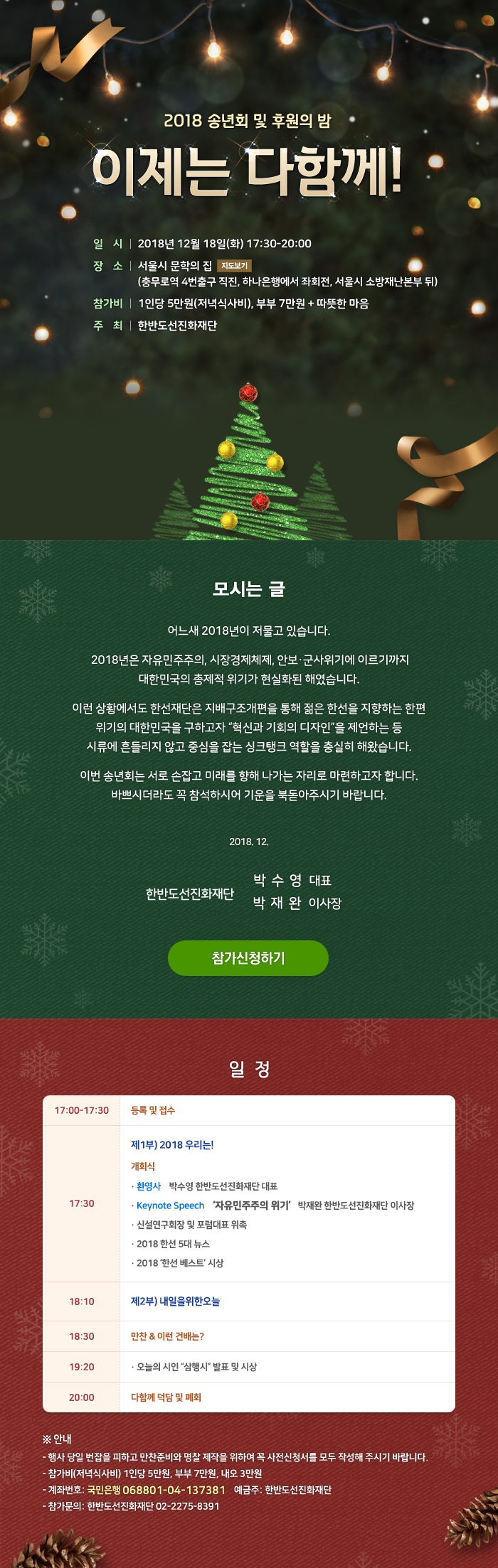 2018 한반도선진화재단 송년회 및 후원의 밤 "이제는 다함께!" (12.18. 화)